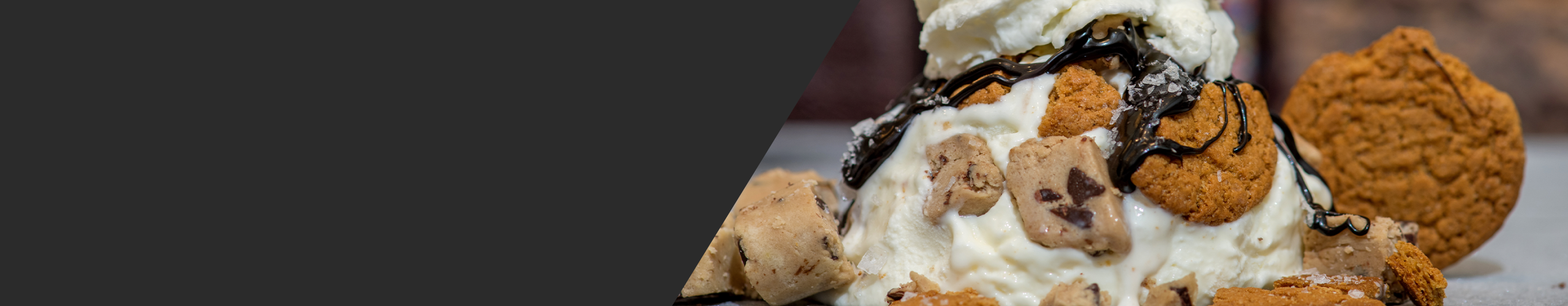 Sweet Cream Ice Cream, Cookie Dough Chunks, Gingersnap Cookies, Sea Salt, Hot Fudge Sauce, Whipped Cream, Cherry